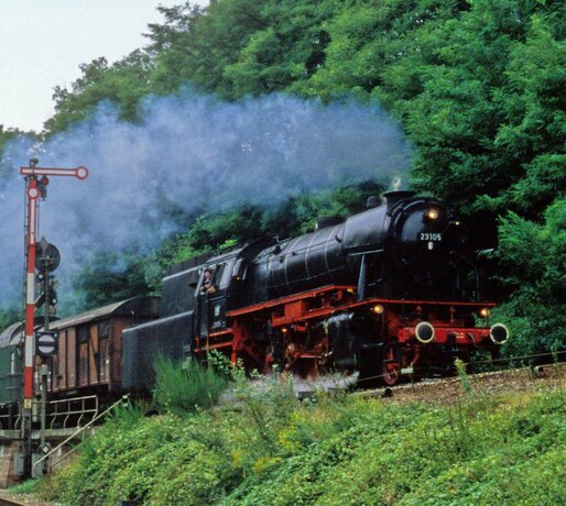 Zum Einsatz kommt, wie bei den Fahrten am Wochenende in der Süd- und Südwestpfalz, eine für die Pfalz typische Dampflok der Baureihe 23. Die Lok 23 058 wurde von 1958 bis 1966 in der Pfalz eingesetzt und in diesem Rahmen insgesamt acht Jahre im Bahnbetriebswerk Kaiserslautern beheimatet. Sie zieht einen Nahverkehrszug, gebildet aus den sogenannten Silberlingen, die ebenfalls epochal passend sind.